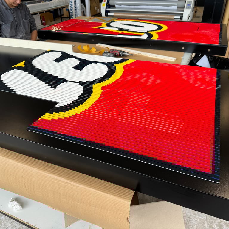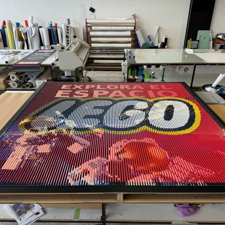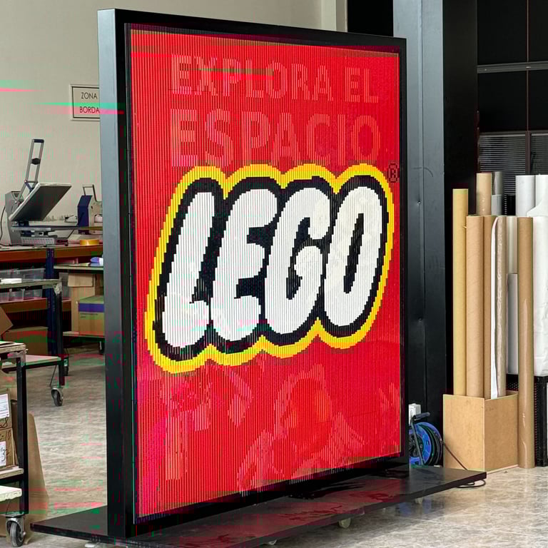 Los mosaicos lenticulares permiten mostrar dos mosaicos a la vez dependiendo del punto de vista del expectador. Este mosaico forma parte de la campaña de promoción "explora el Espacio" del grupo LEGO®