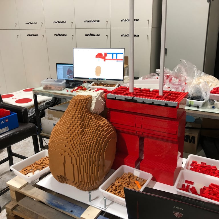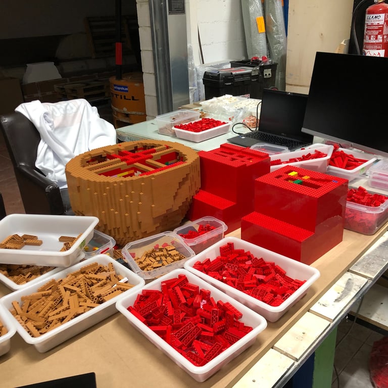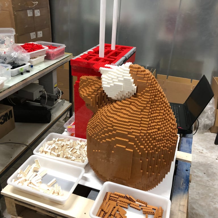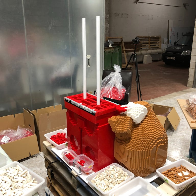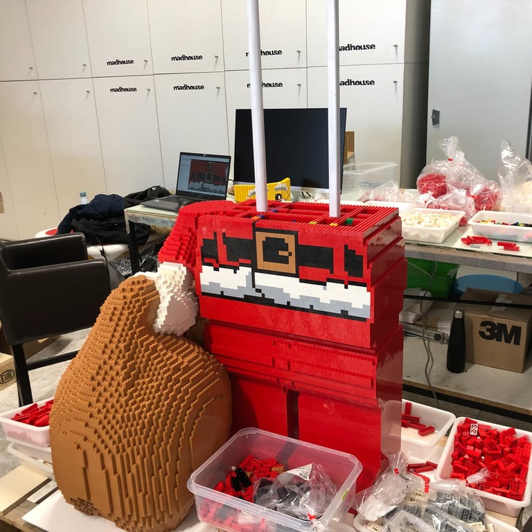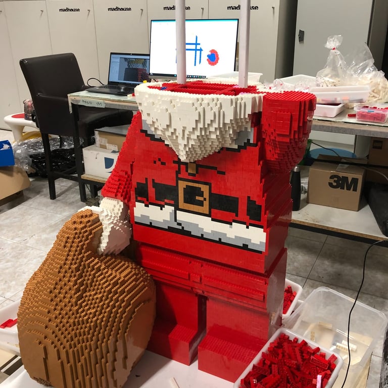 Este modelo es una recreación de una minifigura LEGO® de Papá Noel, diseñada para el evento Juvenalia en IFEMA (Madrid) durante las Navidades de 2023.